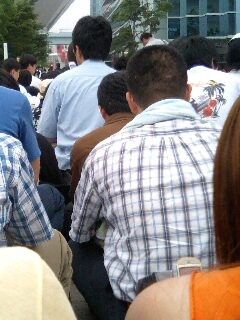 赤いキャリーバッグ(ボーダフォンロゴ入り(爆))で危なっかしい動きしてたら私です(汗)。