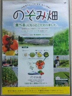 で、その野菜が作られているのが、「のぞみ畑」。JR東海の主力列車である新幹線の「のぞみ」と収益の向上の「のぞみ」を託してという意味で付けられているものと思われ。